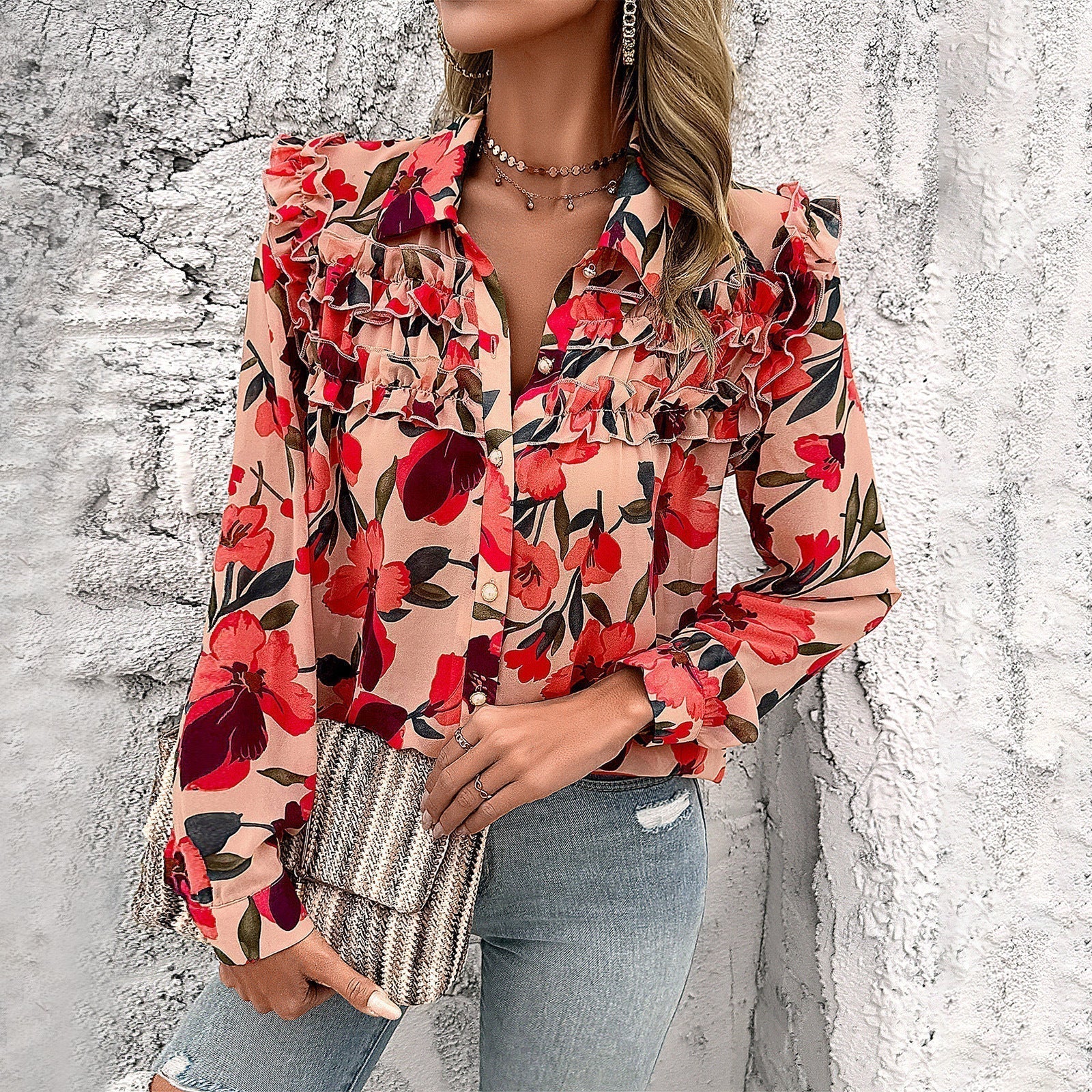 Introducing the Wolff Women's Fashion Long Sleeve Shirt – a timeless piece that effortlessly elevates your wardrobe. Crafted from premium E9 chiffon pearls, this shirt not only feels luxurious against the skin but also boasts an elegant appearance.